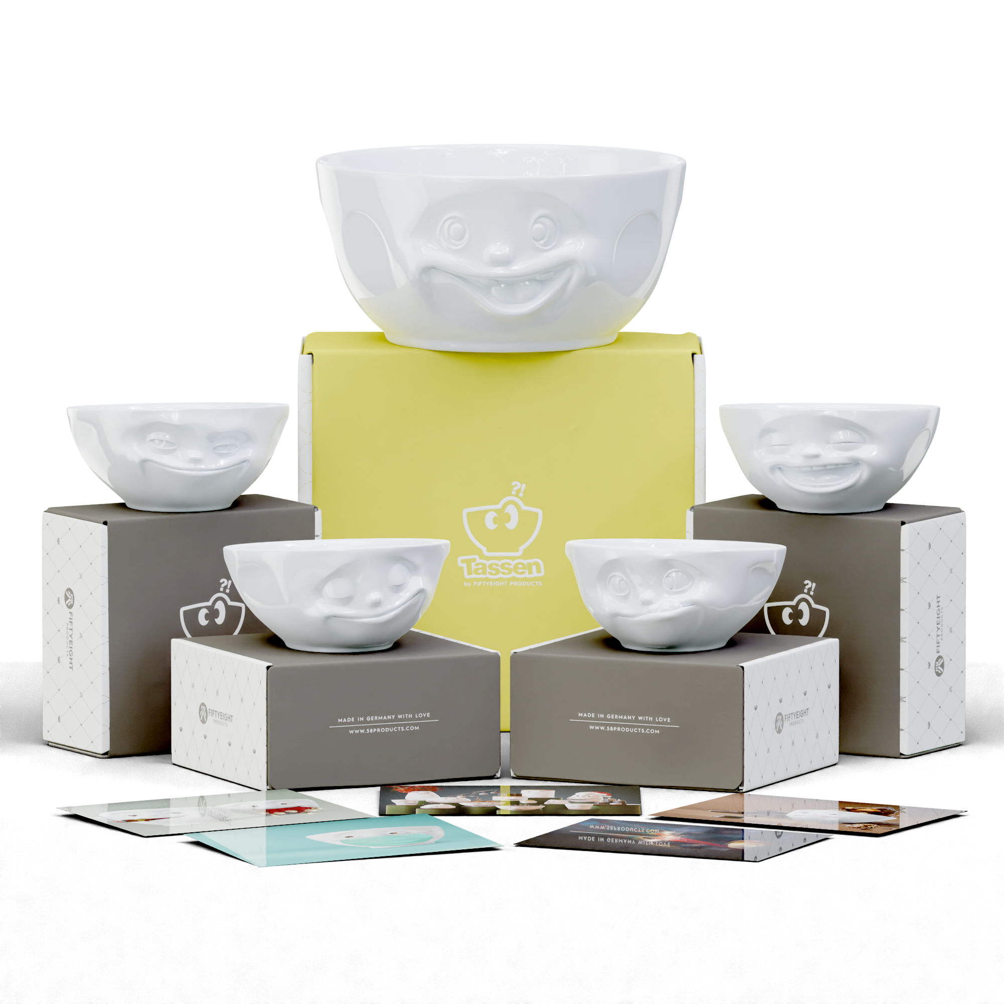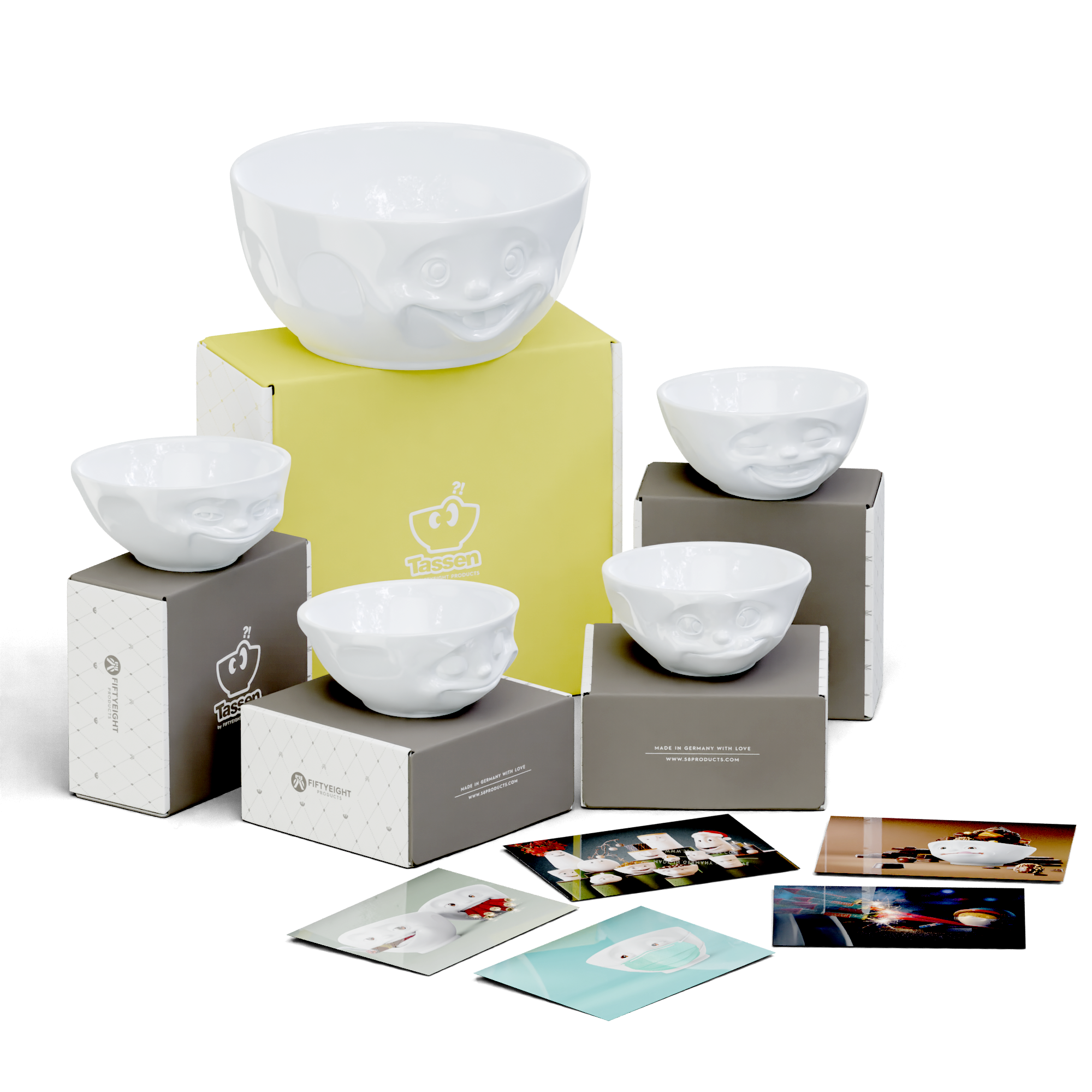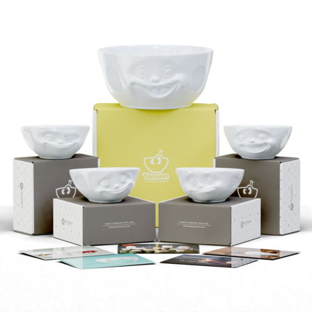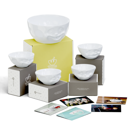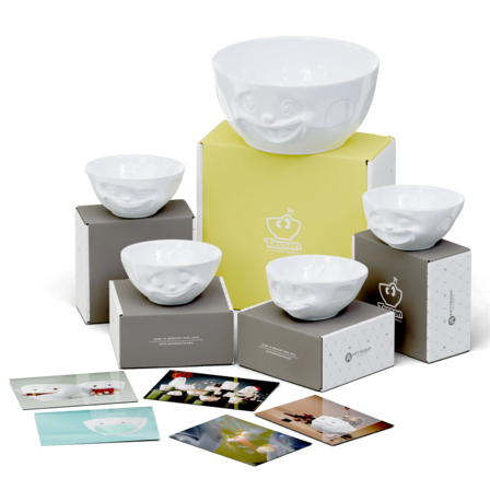 Featuring our Big Bowl OUT OF CONTROL and 4 x 350 ml GRINNING, HAPPY, TASTY and LAUGHING + 5 postcards.