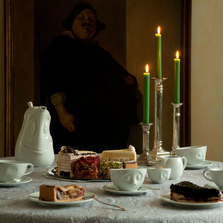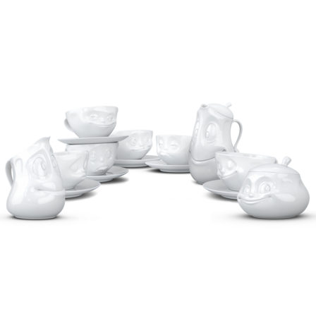 OH PLEASE!, SNOOZY and TASTY (200 ml) and our pot GOOD MOOD (1200 ml), little jug JOLLY, sugar bowl SWEET + 5 postcards