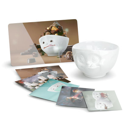 Our 500 ml bowl TASTY, the Breakfast board SWEET CHOCO and 5 different postcards*