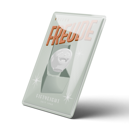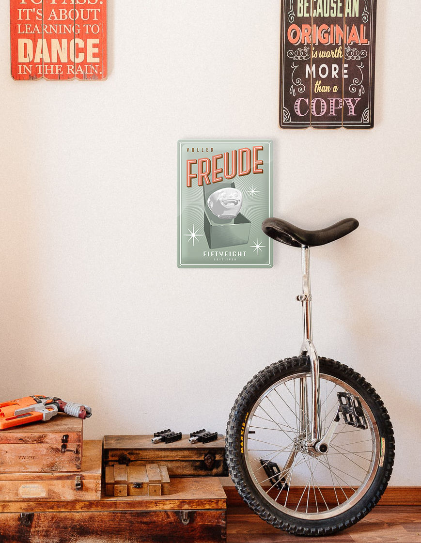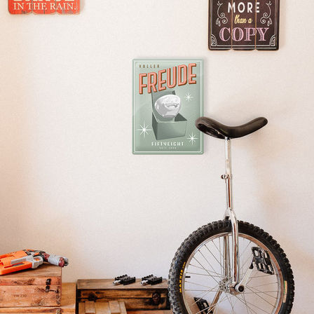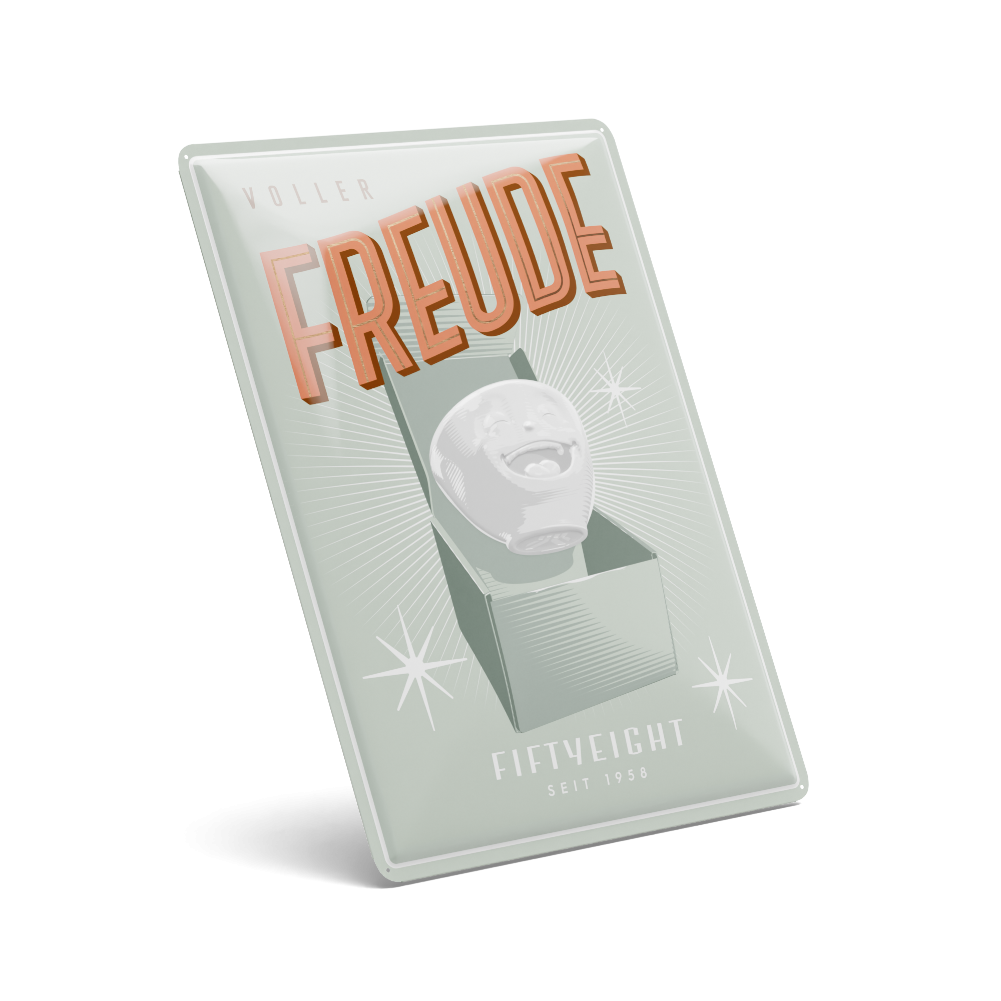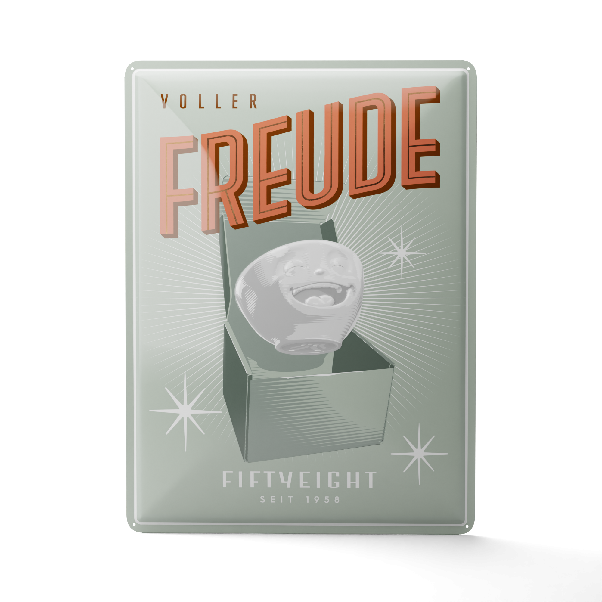Now we explore wall decorations as the latest category: The new, decorative Tin Sign FULL OF JOY depicts the popular ‘Laughing’ Bowl in a retro look.