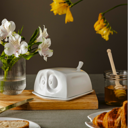 And because our butter dish is a little higher than the average version, you can hide not only a standard 250 g piece of butter under it, but also like a slightly larger chunk of smooth butter.
