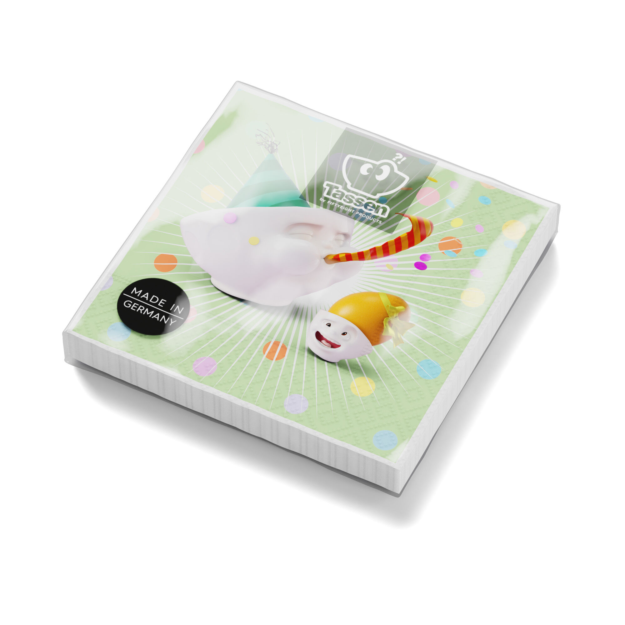 Our colorful paper napkins featuring zany TASSEN artwork elevate every meal into a TASSEN party. As the perfect pairing with our porcelain goods, they bring joy and emotions to the table.