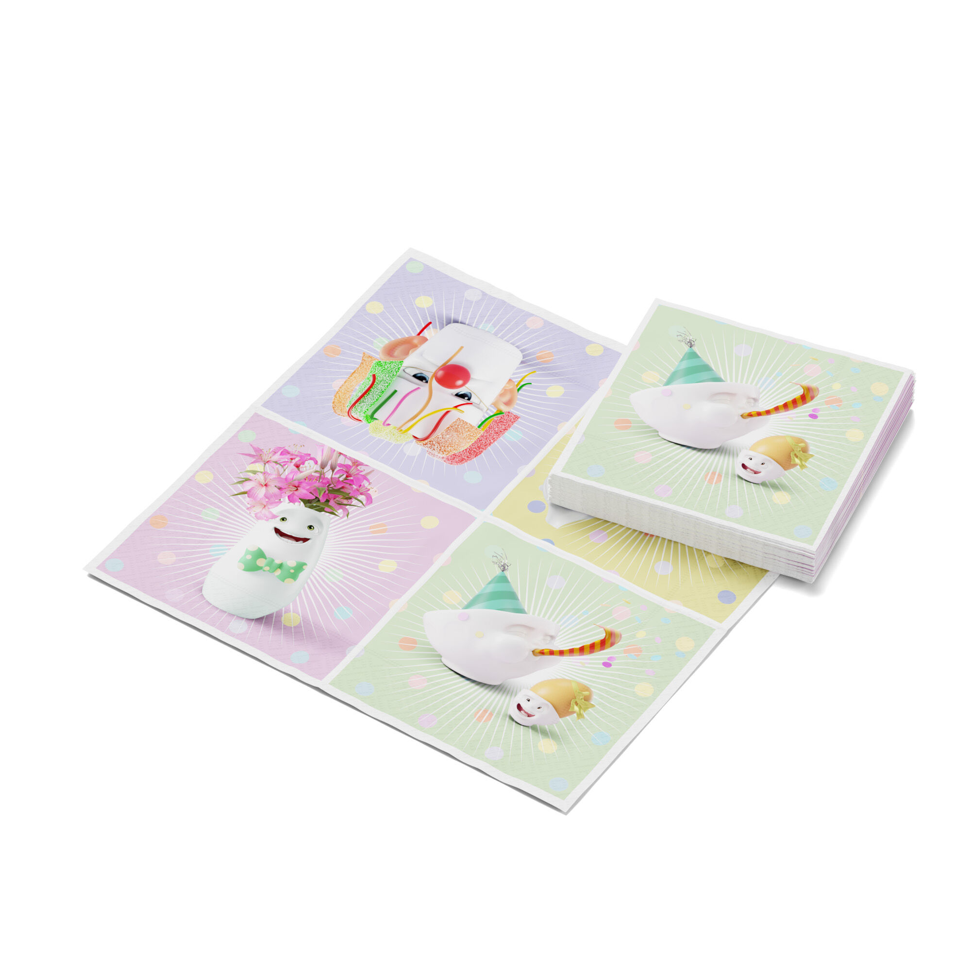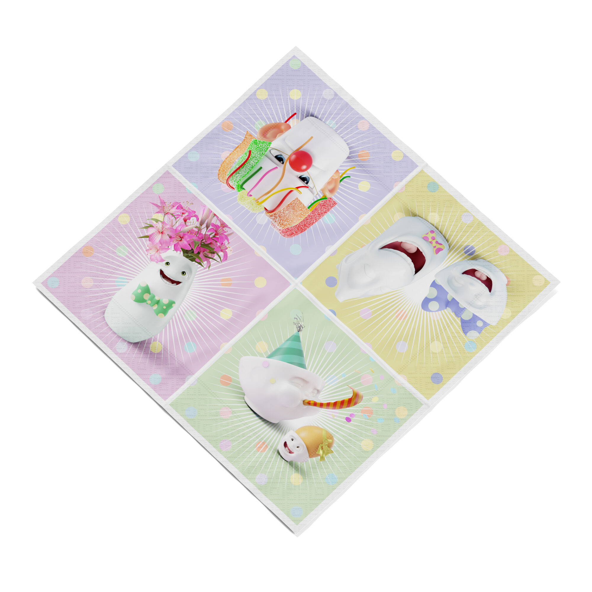 Our cocktail napkins HAPPY HAPPY with colourful, funny party scenes with our TASSEN Family.