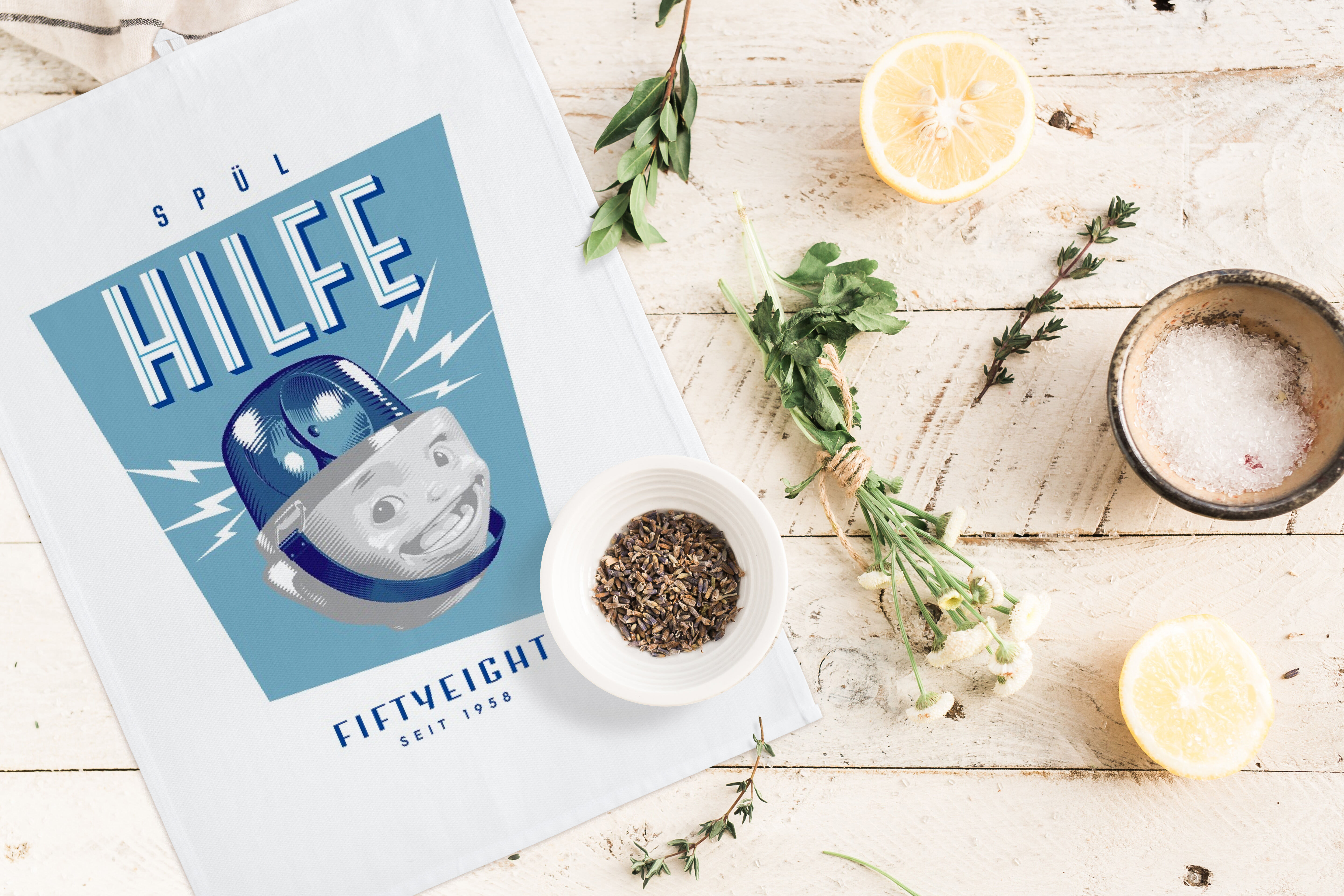 Our brand-new line of dish towels from organic cotton make a splash in the kitchen. The Dish Towel ‘Dish Washing Aid’ design in a retro look from our new Vintage Edition Line in the style ‘since 1958’.