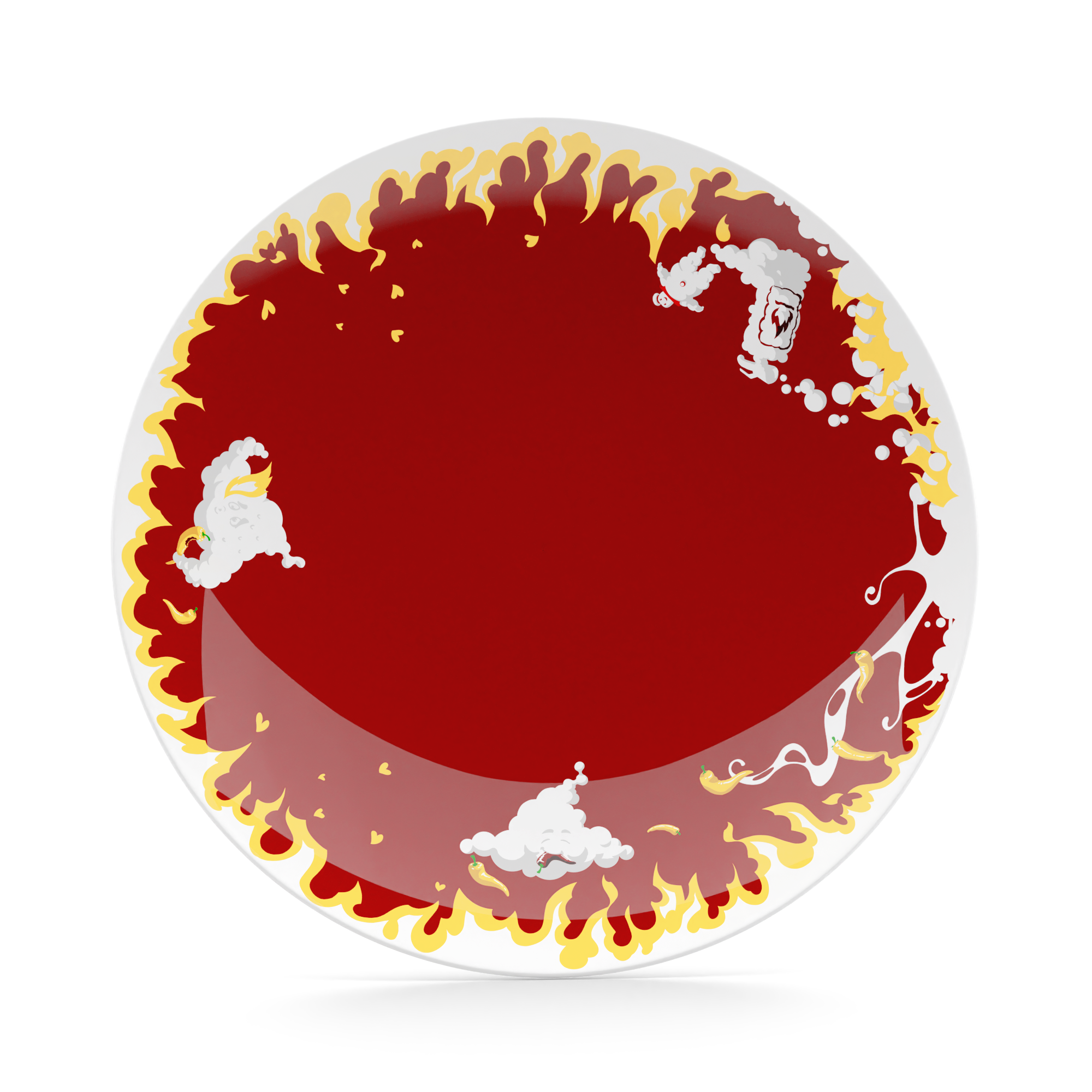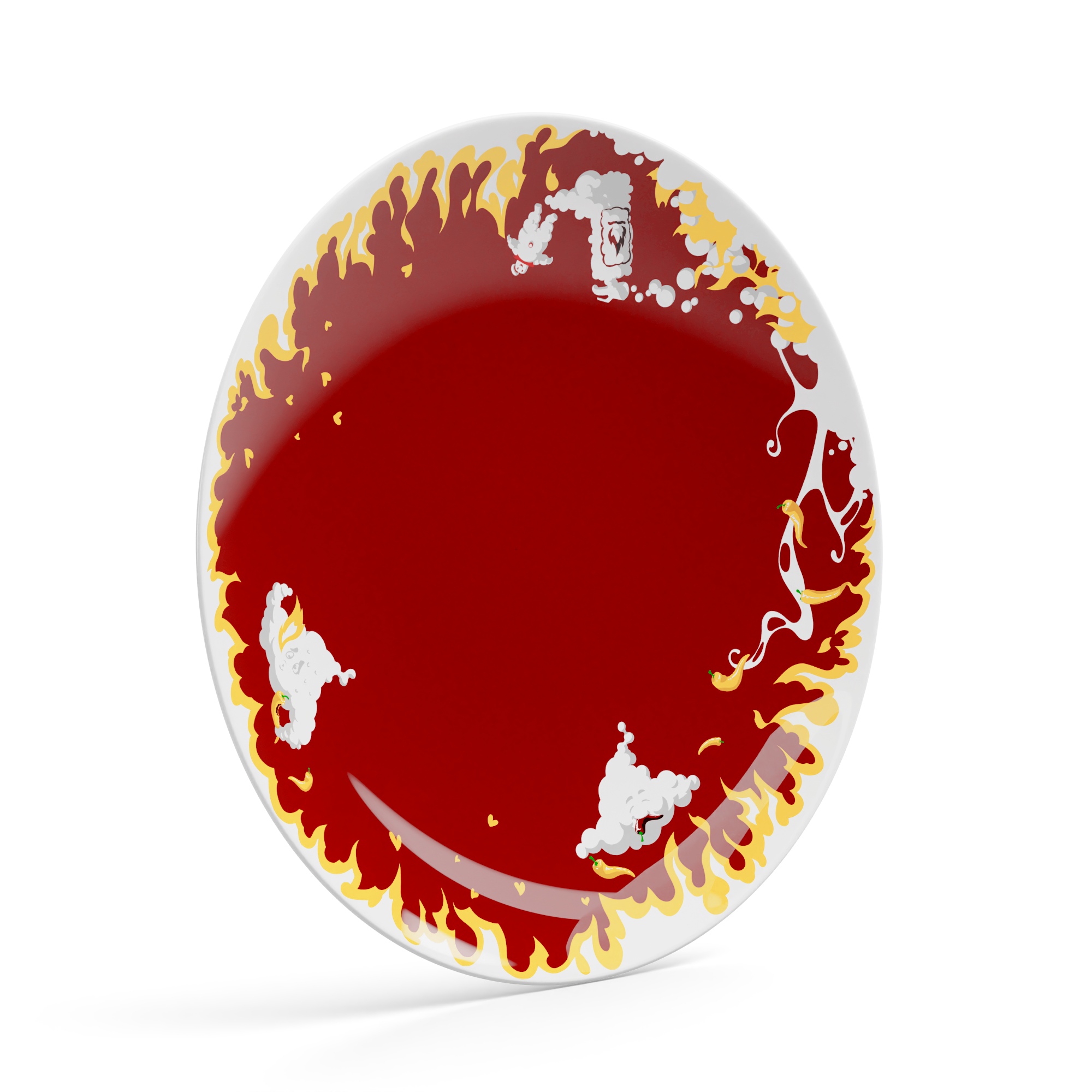 Our desert plate without bite is available as a Special Edition with red hot decoration, the plate comes single.