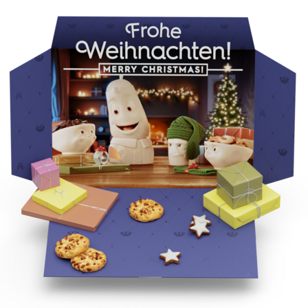 Simply scan the QR code on the front with your smartphone and enjoy our new Christmas film – a little bit of sci-fi magic for your living room!