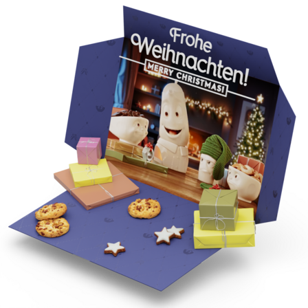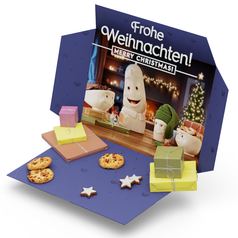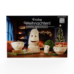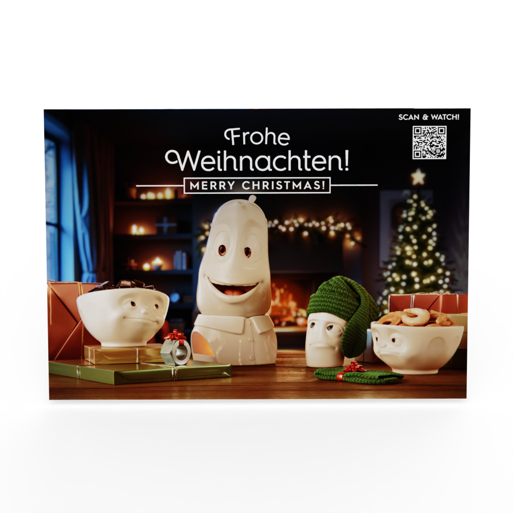 Simply scan the QR code on the front with your smartphone and enjoy our new Christmas film – a little bit of sci-fi magic for your living room!