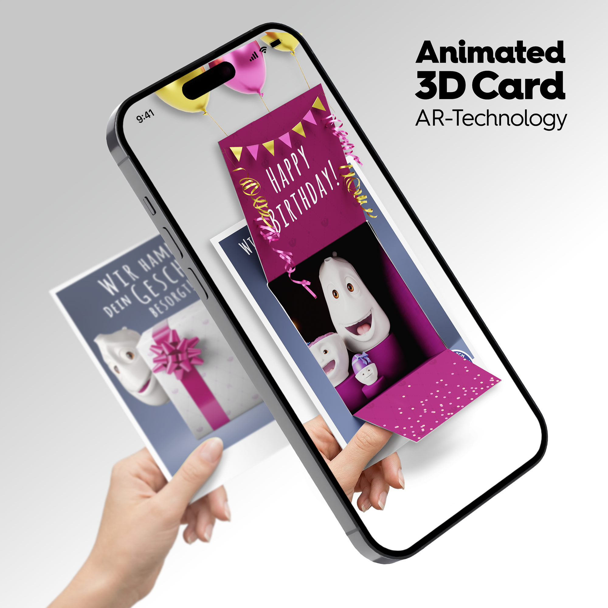 Our new AR greeting cards are more than just eye-catching – they create real moments of surprise!