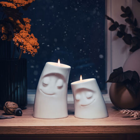 Starting off this new product line, the Candle Cuddlers will be available in two designs, each at a different height: CUDDLY and COZY. Each of these cuties ships in a nice gift box replete with a matching tea light to create a warm ambiance at home. All you need is a match – and the right person to cuddle with!