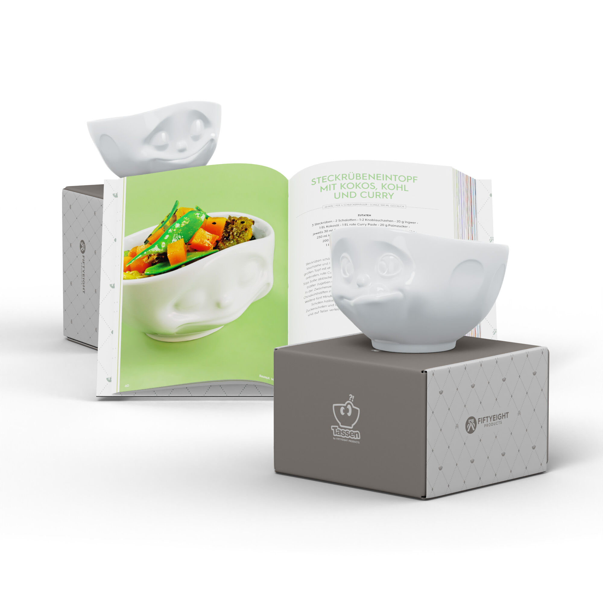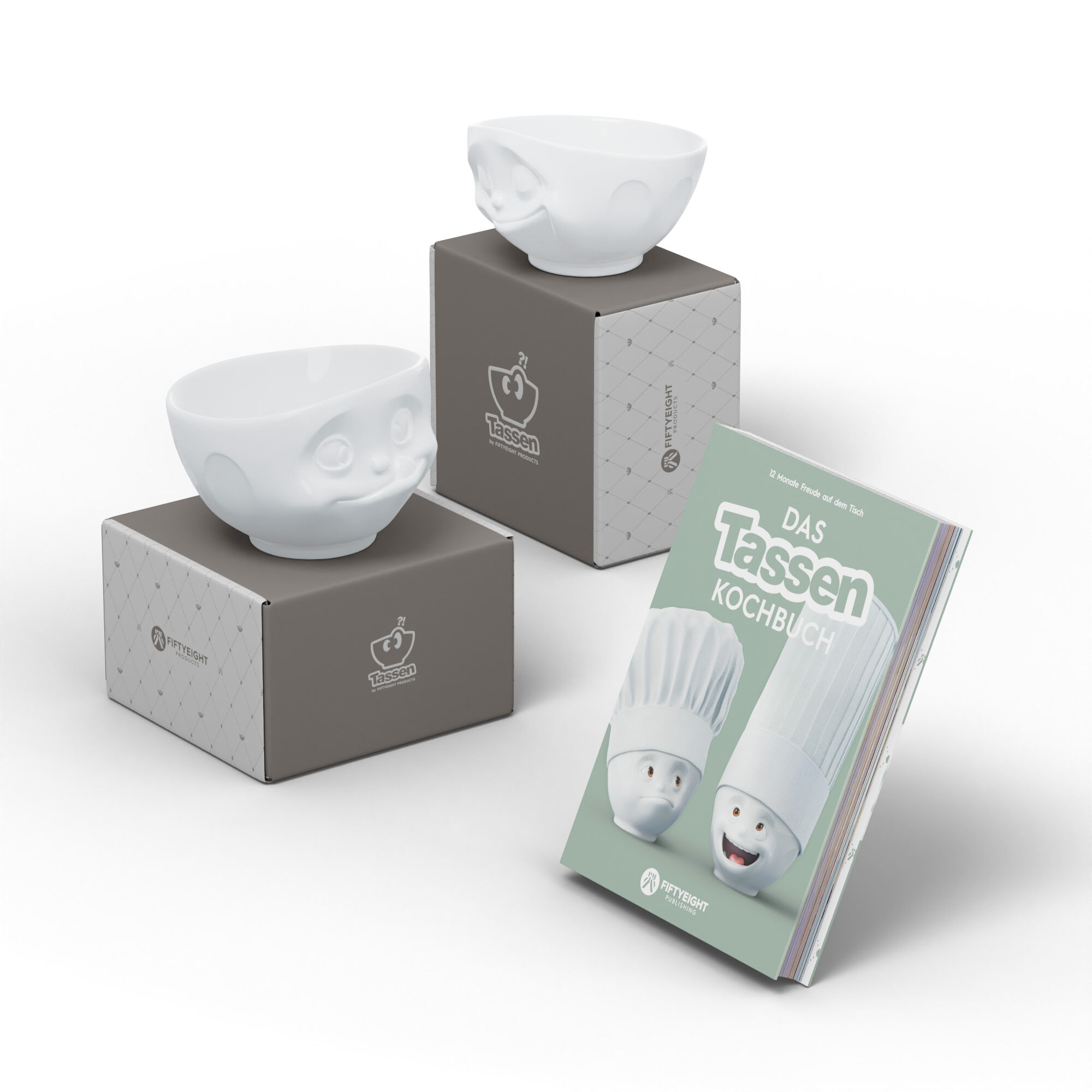 The TASSEN Cookbook (Only in German) + 500 ml bowl TASTY + 500 ml bowl HAPPY + 5 Postcards