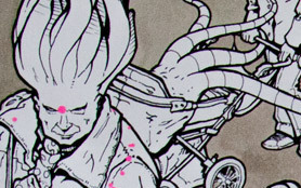As in everything we do, we put a great emphasis on quality in all works of the 58 ARTBANG project! Which is why we work with a highly competent partner company in the high-end print segment. For instance, an ink sketch is digitally scanned in an elaborate high-res process at 9000 dpi, and then printed through an analog process on specialty paper stock. As a result of this process, our prints feature super high resolution and dazzling colors, retaining all the charms of the original. At the same time, we want to be able to offer high quality art at an affordable price, which we are able to do through our 58 ARTBANG Store by selling directly to our customers online – with no middle men.
