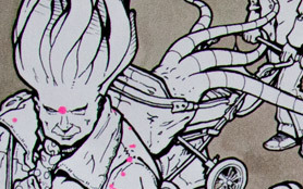 As in everything we do, we put a great emphasis on quality in all works of the 58 ARTBANG project! Which is why we work with a highly competent partner company in the high-end print segment. For instance, an ink sketch is digitally scanned in an elaborate high-res process at 9000 dpi, and then printed through an analog process on specialty paper stock. As a result of this process, our prints feature super high resolution and dazzling colors, retaining all the charms of the original. At the same time, we want to be able to offer high quality art at an affordable price, which we are able to do through our 58 ARTBANG Store by selling directly to our customers online – with no middle men.