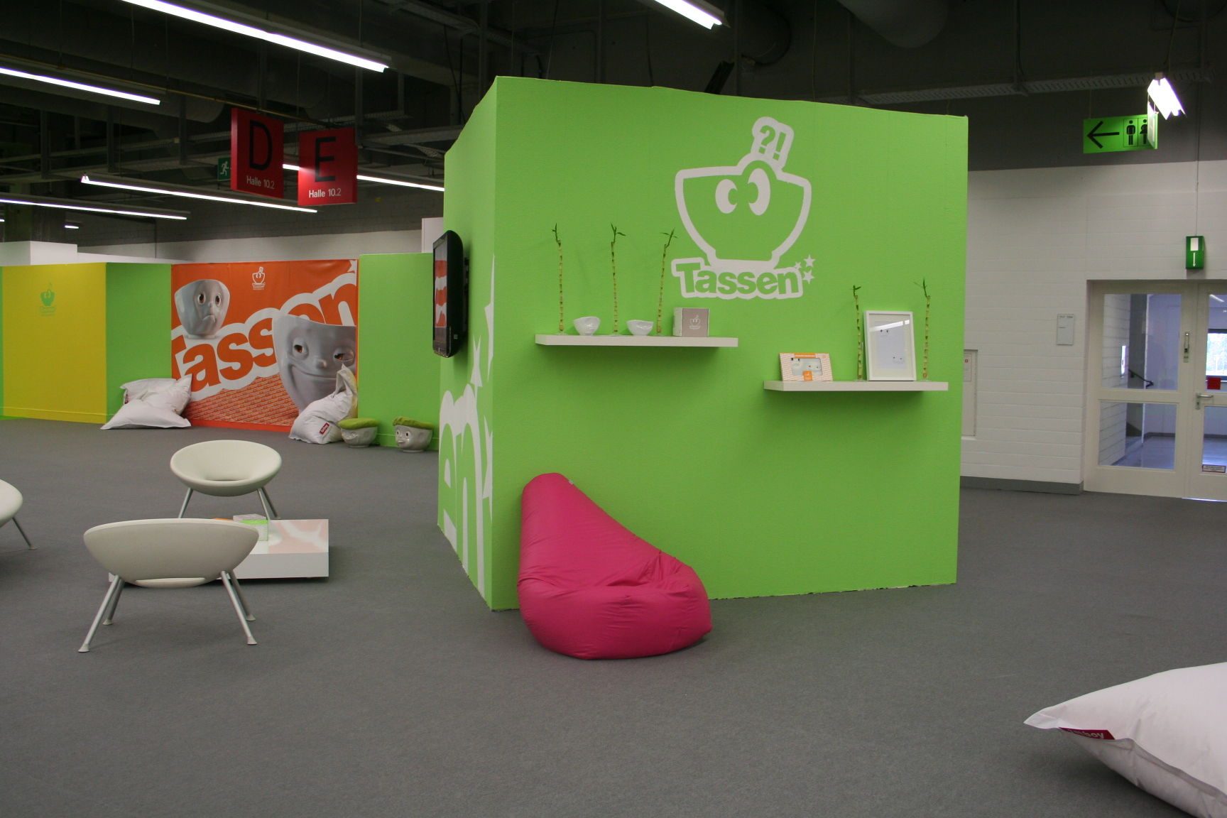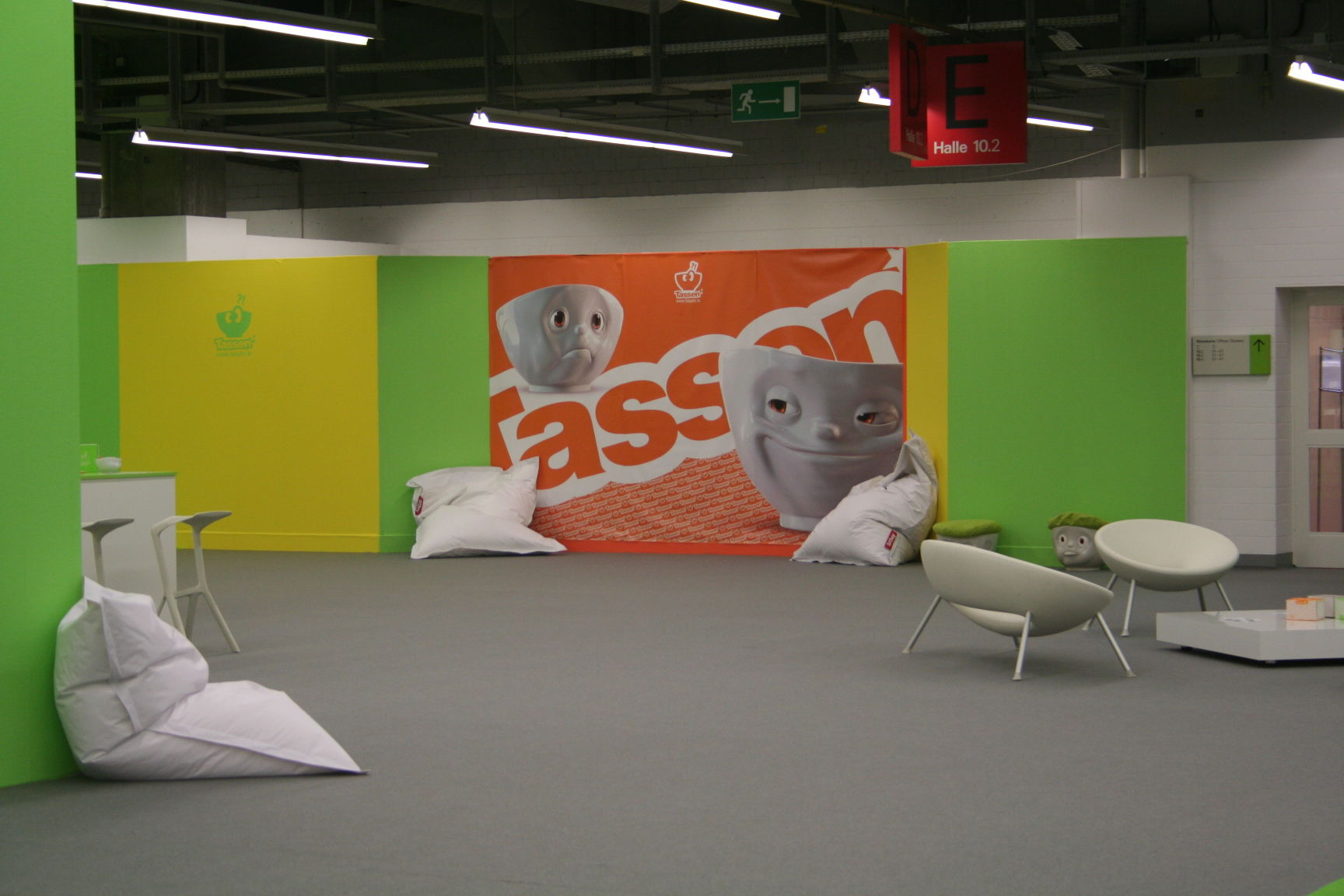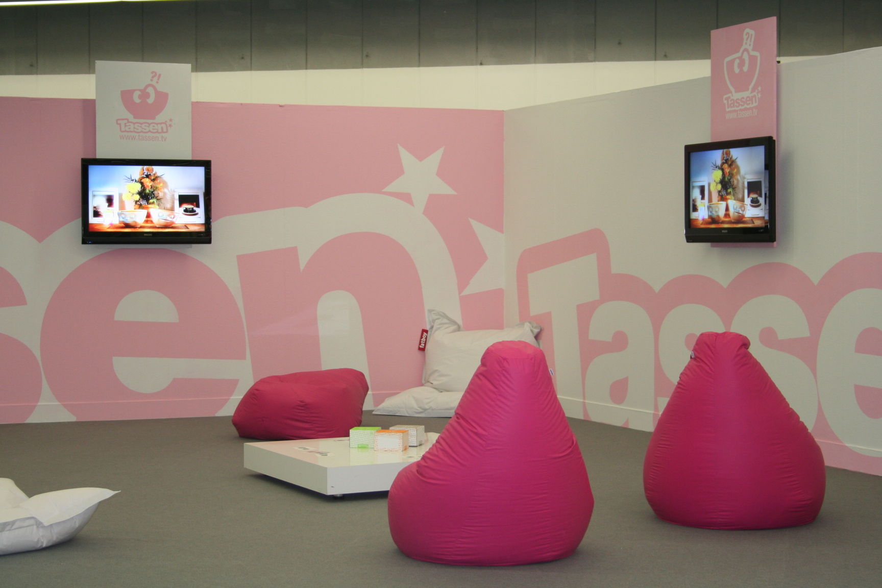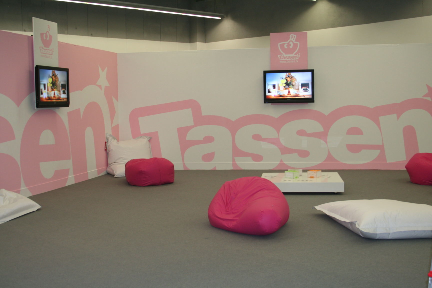 Talk about doing it big. At the 2008 edition of Decorate Life tradeshow (today called "Tendence"), we continued our special cooperation with the Frankfurt Fair Centre and designed a large chill out area with special TASSEN animated movies on display. The real kicker was that we had 300 sq. meters to play with this year – enough room for some major chilling out.