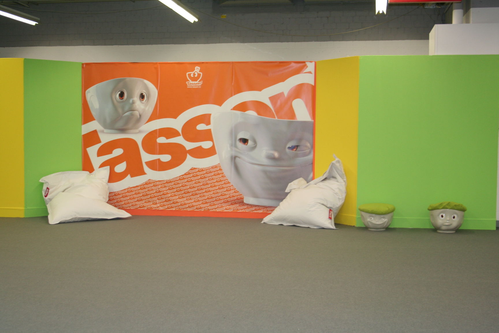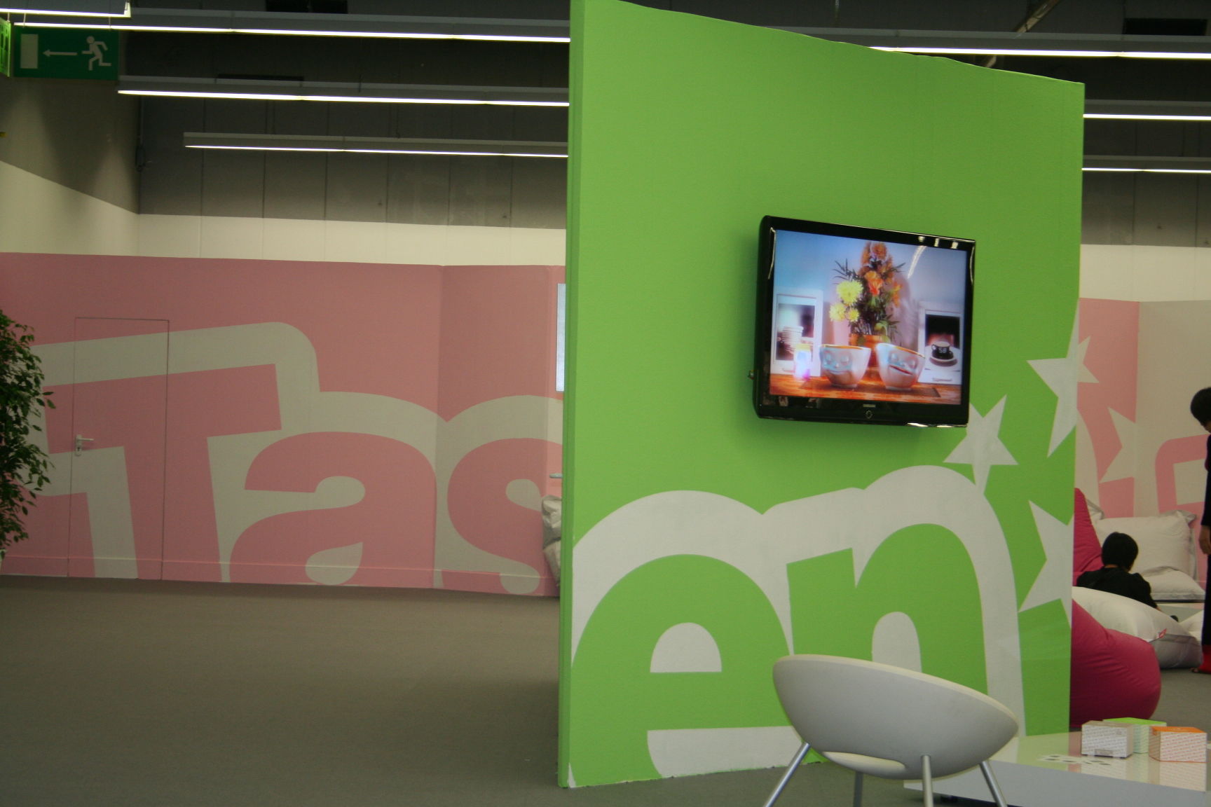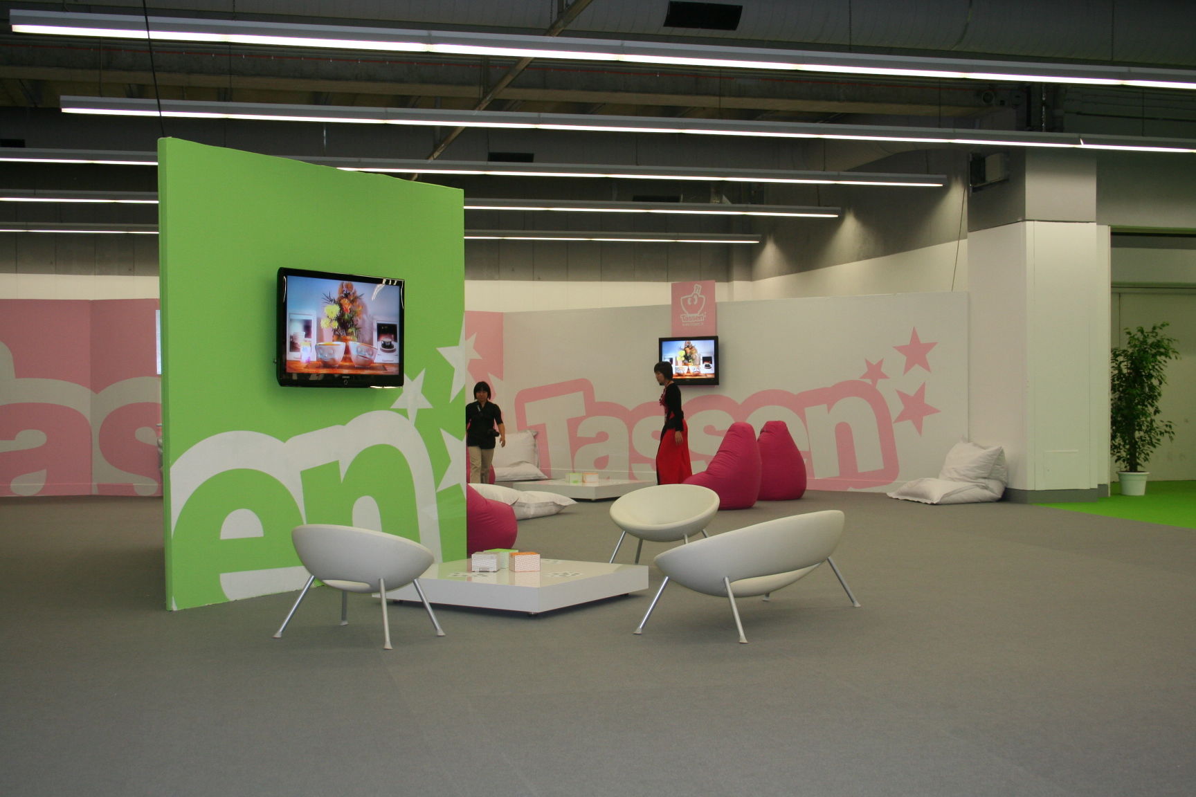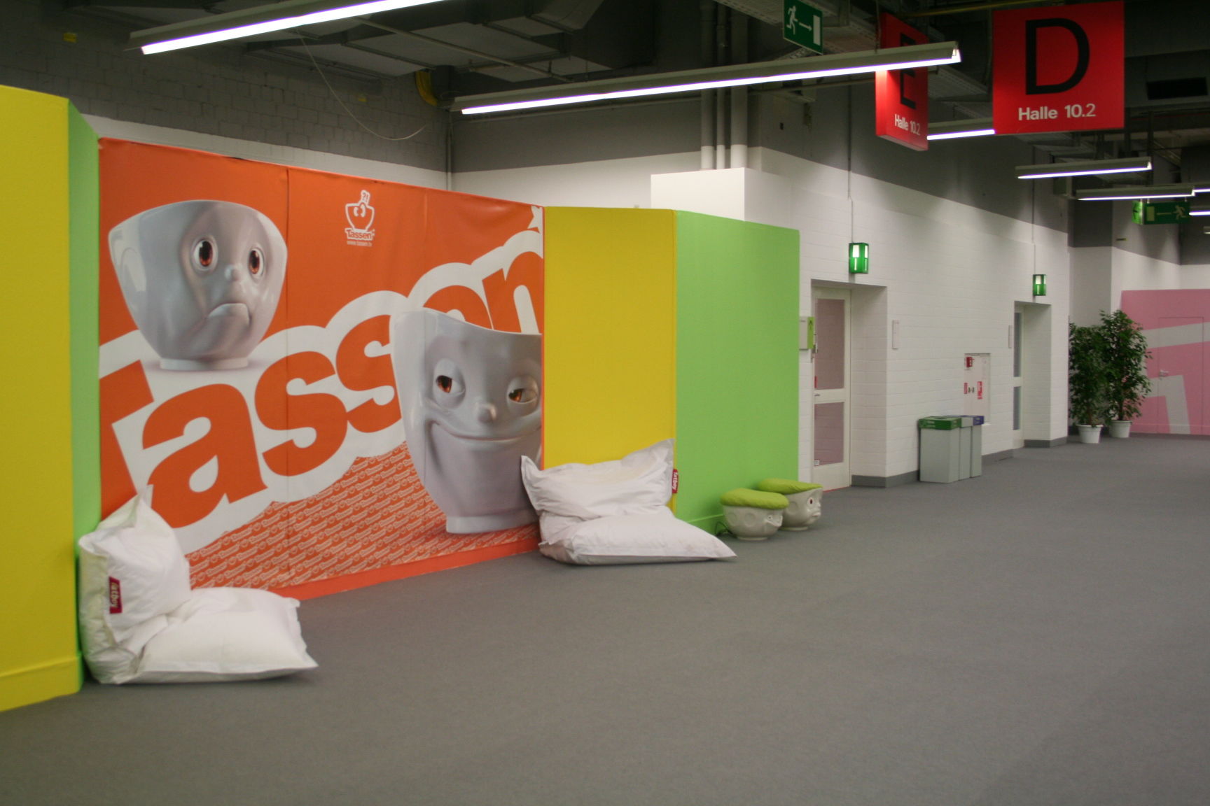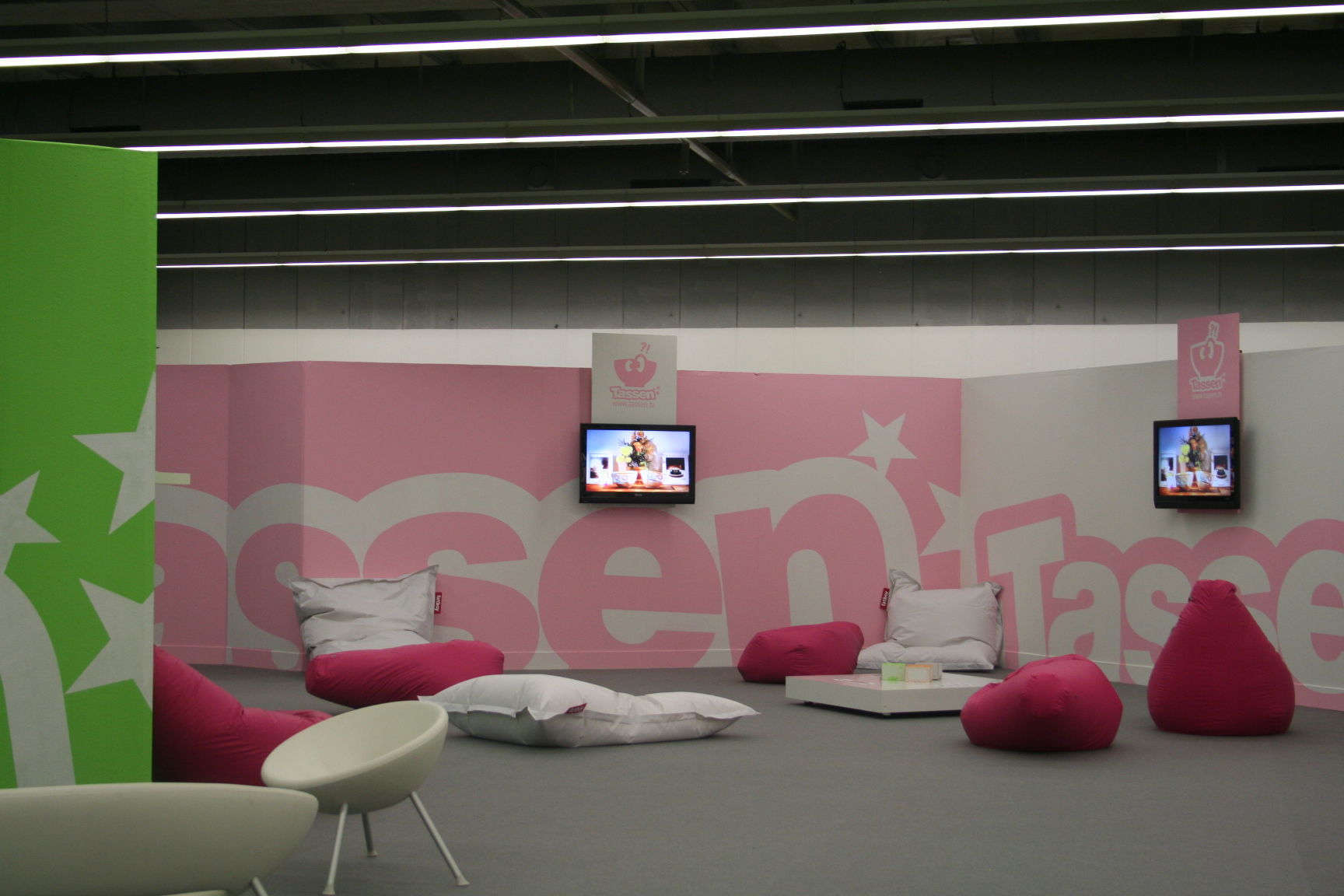 Talk about doing it big. At the 2008 edition of Decorate Life tradeshow (today called "Tendence"), we continued our special cooperation with the Frankfurt Fair Centre and designed a large chill out area with special TASSEN animated movies on display. The real kicker was that we had 300 sq. meters to play with this year – enough room for some major chilling out.