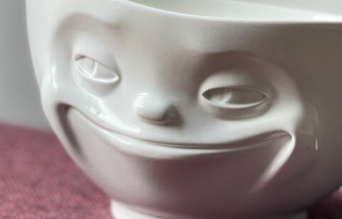 Two years passed before we had the first samples on the table that looked exactly like they did in 3D. The big day arrived in 2007: the launch became reality. The first serial production began with the two classics GRINNING and SULKING at a porcelain factory in the Czech Republic. The Czech Republic has a long tradition of porcelain production, the quality was right and the price was OK, even though the minimum order requirement of 20,000 units made us sweat a little.