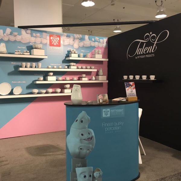 The show launched on Thursday morning and our booth looked flawless, all our porcelain made the long trip intact. Right after opening, the first visitors find their way to our segment and provide immediate feedback. They don’t like our products, it turns out, they LOVE them! Although most American buyers and store owners have never heard of Fiftyeight Products before, they immediately have the emotional response we were hoping for. “Sooo Cuuute!!!”, “Those are darling!”, “Ah, so quirky!” some respond, while many are impressed with the quality and finish of our porcelain. Some are reminded of Disney movies (thanks for the compliment), and everyone likes our animated films showcased on loop at our booth. And many also recognize that our products are “Made in Germany” as a seal of craftsmanship.